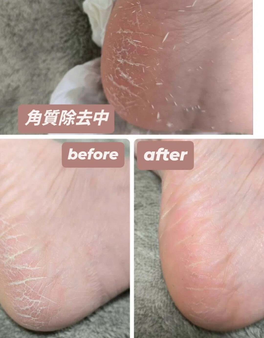 施術中は古い角質がポロポロと落ちていき、ケア後はつるんと滑らかな質感に変化します✨